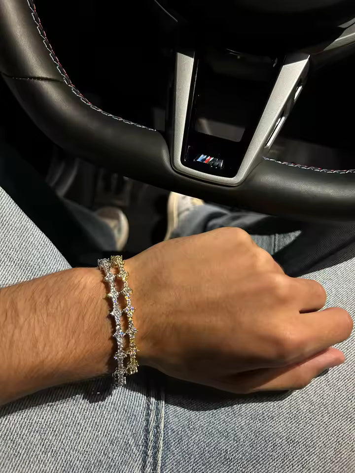We use premium high-quality blue zircon stones that are expertly handset to ensure maximum brilliance. These stones are cut to reflect light beautifully, giving you that high-end iced-out look without the massive price tag. It is specifically designed to catch eyes from across the room.
